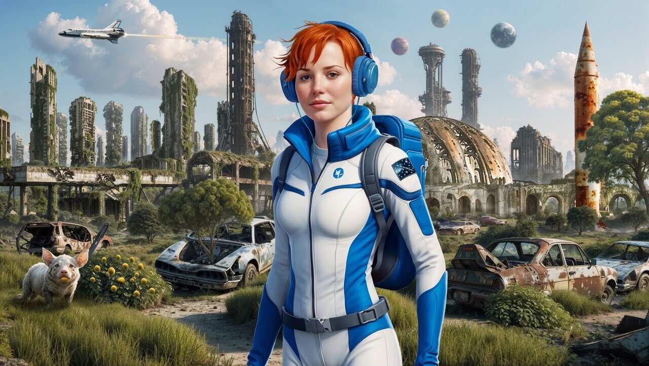 И ещё одна тематическая подборка картин, созданных нейросетью, на сей раз в жанре научной фантастики, фэнтези и мистики. Осколки цивилизации. Прибытие - 2 Впервые идея картины в жанре постапокалипсиса «Осколки цивилизации. Прибытие» появилась у меня несколько лет назад. По сюжету девушка с Земли высаживается на далекой планете и исследует руины погибшей цивилизации. Для портрета космической исследовательницы я попросил попозировать коллегу по работе, а для постапокалиптического пейзажа сфотографировал один заброшенный на тот момент объект в Барнауле и изменил его до неузнаваемости в Фотошопе. Спустя годы я решил создать второй вариант картины, используя новые возможности, которые появились благодаря нейросетям. Подробно описав Leonardo AI сюжет и внешность персонажа, я дополнительно предоставил нейросети портрет гостьи с Земли с первой картины и дал задание взять его за основу при создании нового рисунка. Результат очень порадовал. Нейросеть не только нарисовала впечатляющий постапокалиптический пейзаж, но и точно изобразила портрет исследовательницы с первой картины, при этом перерисовала его в совершенно другом стиле, с иным освещением, с другой позой и поворотом головы, в точности вписав в новую окружающую обстановку. Со временем мы на пару с нейросетью создали целую серию картин из серии «Осколки цивилизации. Прибытие», с разными персонажами, не все из которых люди, в разных художественных стилях, но объединенных общей темой – высадки на другую планету для исследования руин погибшей цивилизации. И снова исследовательница идет навстречу неизведанному через полуразрушенный портал. На сей раз исследователем погибшего мира, затерянного на просторах космоса, выступил робот. Инопланетный грызун Симпатичный инопланетный зверёк с сочным фруктом. Разноцветная корова Недалекое будущее. Красивая разноцветная генномодифицированная корова пасется на альпийском лугу на фоне футуристических домиков для туристов. Космическая путешественница Что будет если попросить нейросеть изобразить девушку-космическую путешественницу за штурвалом звездного корабля в стиле студии Ghibli? Получилась вот такая задорная, любопытная, смелая девушка, отправляющаяся в космос навстречу приключениям. И характер, и внешность – всё в духе знаменитой студии аниме. Наверное, даже сам Хаяо Миядзаки мог бы принять её за кого-то из своих персонажей. Продолжение темы космической путешественницы в стиле студии Ghibli. Дверь в лето Пожалуй, зимой многие хотели бы отыскать такую «Дверь в лето» и сбежать подальше от холода в тёплые края. Источником вдохновения для картины послужил одноимённый фантастический роман Роберта Хайнлайна, а также серия романов Стивена Кинга «Тёмная башня». Нейросеть нарисовала картину со стилизацией под творчество художника Майкла Уэлана, специализирующегося на оформлении научно-фантастических и фэнтезийных книг.
